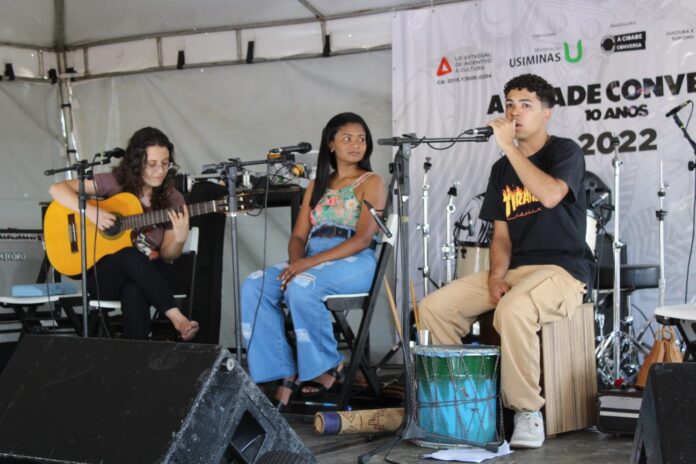 No último domingo, 15 de janeiro, o projeto “A Cidade Conversa” reuniu a comunidade na Praça da Matriz, em Mateus Leme, oferecendo uma programação totalmente gratuita, composta por apresentações musicais e outras intervenções artísticas, como mostras de desenhos e de poemas. A iniciativa, patrocinada pela Mineração Usiminas, por meio da Lei Estadual de Incentivo à Cultura, contou com apoio do Instituto Usiminas e da Prefeitura de Mateus Leme.