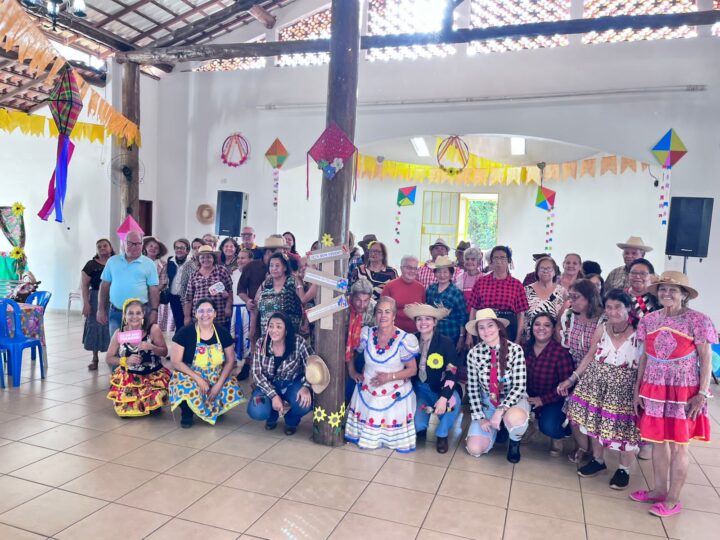 A Prefeitura de Mateus Leme realizou na última terça-feira (29), o tradicional Arraiá do Projeto Feliz Idade. O evento, voltado especialmente para os idosos do município, reuniu mais de 200 participantes entre membros da terceira idade e convidados. A festa foi marcada por muita animação, com apresentação de quadrilha, música ao vivo e uma variedade de comidas típicas que encantaram os presentes.