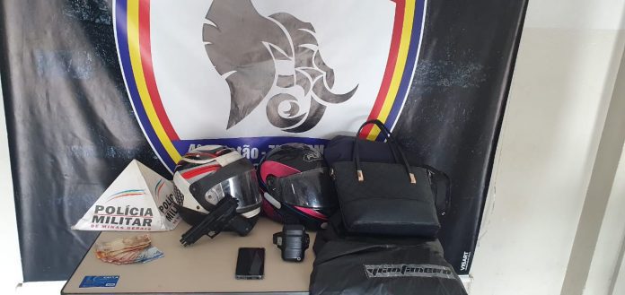 Com o homem foi encontrado um celular fruto de um dos roubos. Em mais diligências, os policiais encontraram a bolsa de outra vítima, as roupas utilizadas por ele para o cometimento dos crimes, além de uma réplica de arma de fogo e um cartão de poupança roubado.