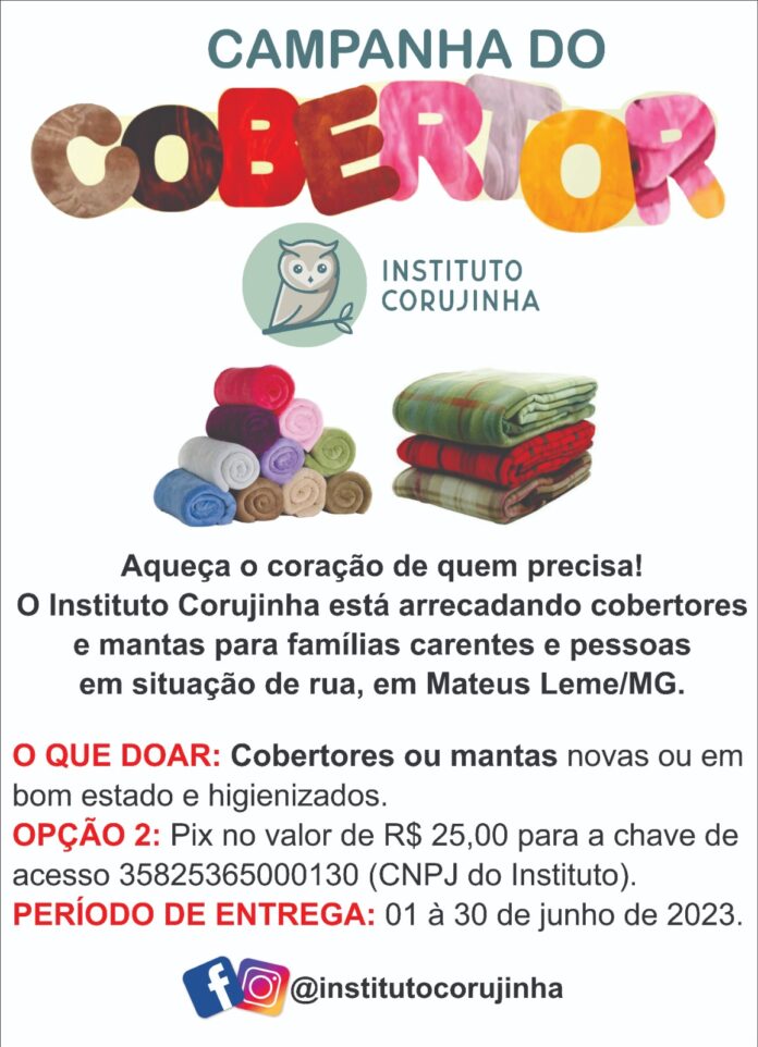Para os colaboradores e voluntários que queiram doar dinheiro devem fazê-lo por um PIX no valor de R$25 através do CNPJ do Instituto: 35825365000130. A campanha segue até o dia 30 de junho e todo o valor arrecadado será revertido para a aquisição de cobertores e mantas, que serão distribuídos para famílias carentes e pessoas em situação de rua em Mateus Leme.