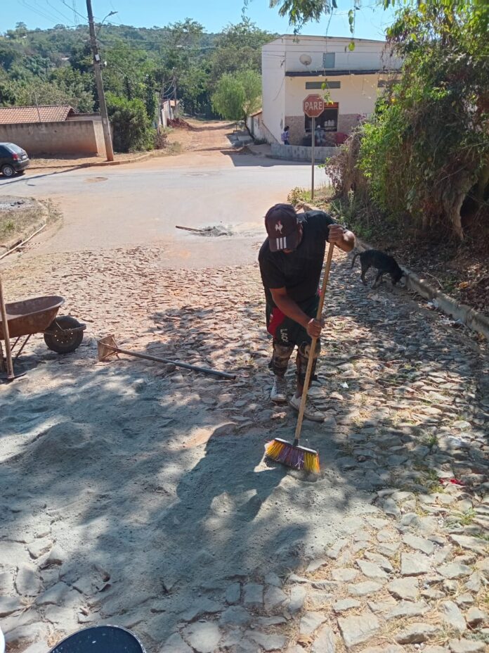 A cena de moradores tapando buracos com recursos próprios tem se tornado rotina em Juatuba. Nesta semana, foi a vez da vizinhança da Rua Tancredo Neves, no bairro Jardim Leme de, literalmente, colocar a mão na massa. Em vídeo compartilhado, um morador aparece fazendo o assentamento das pedras no calçamento da rua.