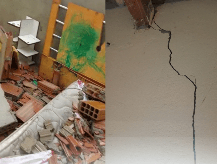Teto do imóvel caiu parcialmente; outra residência no Braúnas também apresenta rachaduras e risco de desabamento