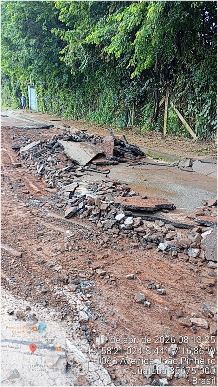 No Distrito de Francelinos, a força das águas provocou danos em diversas vias, comprometendo a pavimentação e dificultando o deslocamento de moradores. Já na Avenida João Pinheiro, no Bairro Santo Antônio, trechos da pavimentação asfáltica sofreram desplacamento devido à infiltração de água e à pressão hidráulica.