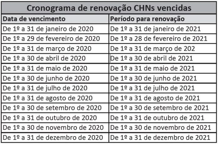 Caso os Detrans não estabeleçam um cronograma específico, a transferência de propriedade de veículo adquirido no período indicado deverá ser efetivada até 31 de dezembro de 2020. Para os veículos novos, adquiridos no período de 19 de fevereiro de 2020 a 30 de novembro de 2020, também valerá a data 31 de janeiro de 2021 para a efetivação do registro e licenciamento.