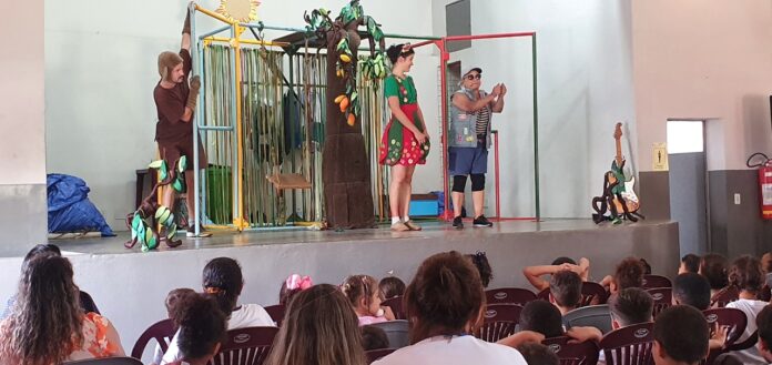 Na apresentação, em torno de uma grande árvore, três personagens – um menino, uma menina e um macaco – revelam suas fantasias, dúvidas e sonhos relacionados ao meio ambiente, preservação dos bens naturais e gestão de resíduos. Mergulhando em uma aventura, eles aprendem sobre respeito à natureza e reciclagem. O espetáculo foi realizado na sede de Azurita, para alunos da Escola Municipal Helen Jaqueline de Souza e do Conselho de Desenvolvimento Comunitário de Azurita (Condecoma).