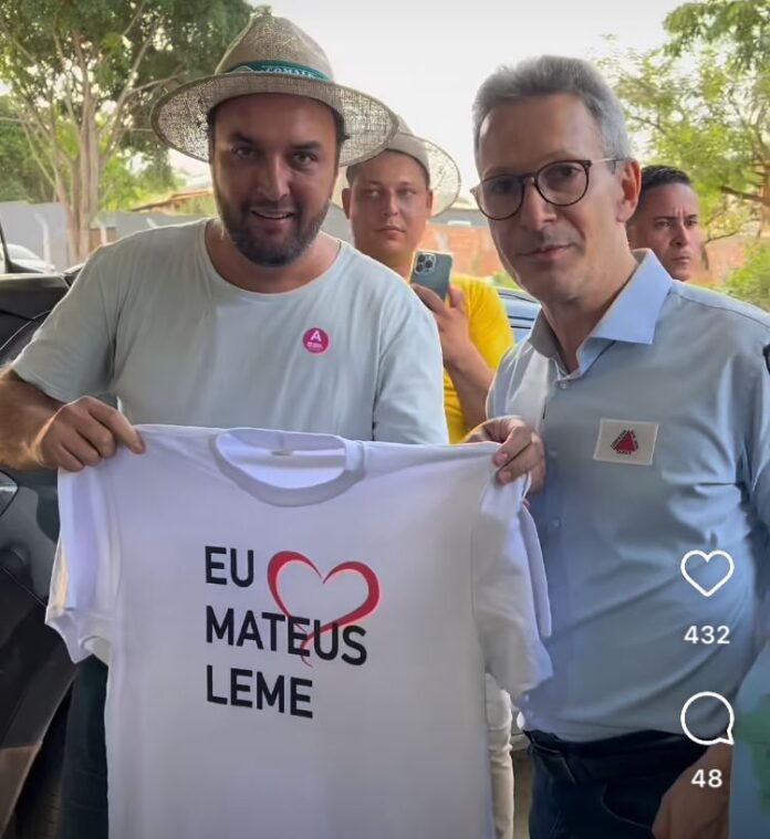 Ao final da visita, Zema posou para fotos e recebeu das mãos de Júlio Fares, uma camiseta com os dizeres “Eu amo Mateus Leme”.