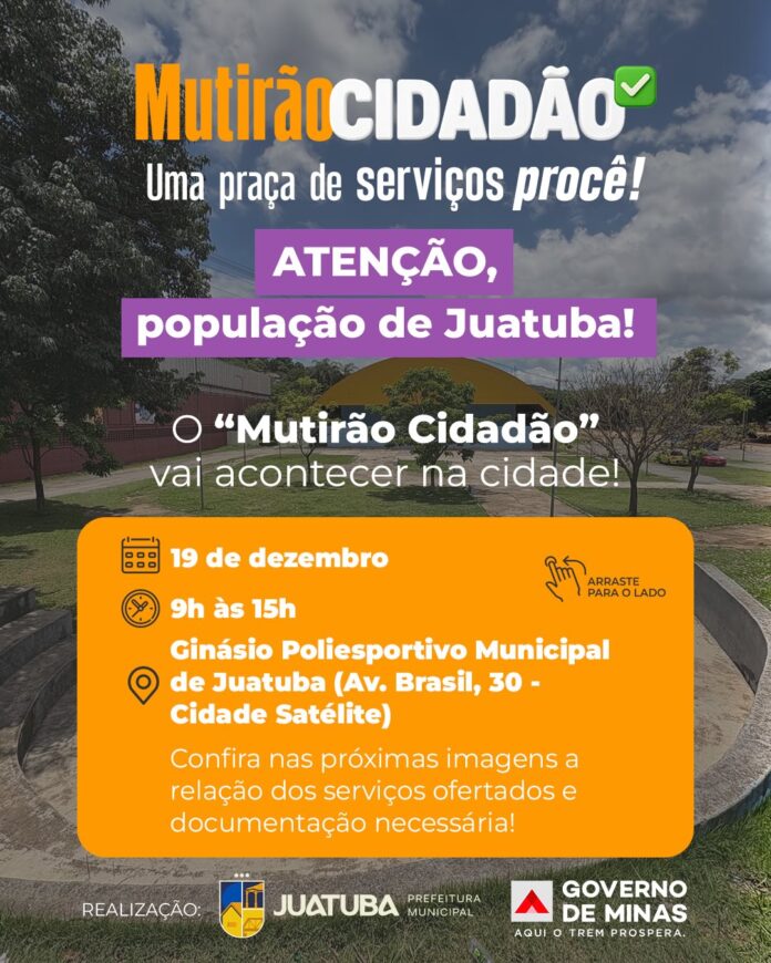 O Governo de Minas, por meio da Ouvidoria-Geral do Estado (OGE/MG), realiza nesta sexta-feira (19/12) a sexta e última edição do Mutirão Cidadão em 2025, em parceria com a Prefeitura de Juatuba. A ação integra o programa Ouvidoria Móvel e acontece no município de Juatuba, na Região Metropolitana de Belo Horizonte.