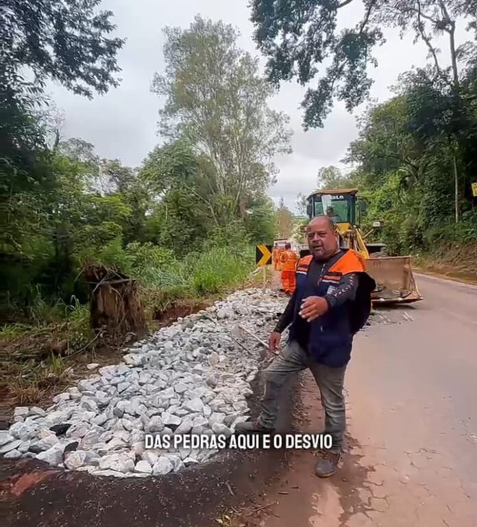 Este ano, no entanto, o cenário mudou e os órgãos responsáveis foram oficiados pela Defesa Civil Municipal e rapidamente vieram fazer a intervenção. Um vídeo compartilhado nas redes sociais, mostra o coordenador da Defesa Civil, Antônio César, explicando o trabalho em andamento. A ação, realizada esta semana, inclui medidas paliativas para conter a erosão e prevenir o agravamento da situação durante o período chuvoso. “Estamos na fiscalização aqui na MG-050. Foram iniciadas a recomposição das pedras e o desvio da água lateral para evitar mais danos”, afirmou.