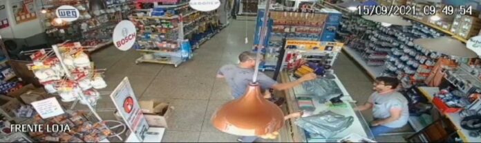 Um homem, ainda não identificado, foi flagrado furtando uma casa de material de construção no Centro de Mateus Leme. A ação criminosa foi registrada por câmeras do sistema de vigilância. As imagens que viralizaram nas redes sociais, mostram que o homem pegou três sacolas no balcão, enquanto o funcionário do estabelecimento atendia outro cliente, saiu da loja e atravessou a rua rapidamente.