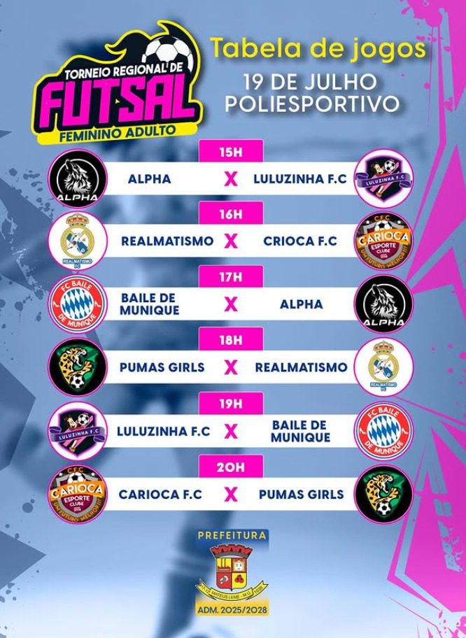 Neste final de semana, Mateus Leme será palco de um evento esportivo inédito: o Torneio Torneio Regional de Futsal Feminino Adulto, que reunirá seis equipes e 75 atletas no Ginásio Poliesportivo OSPASA. A competição, promovida pela Secretaria Municipal de Esporte e Lazer, tem como proposta fortalecer práticas esportivas inclusivas e promover a igualdade de gênero no município.