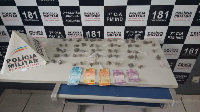 Uma equipe da Polícia Militar de Juatuba realizava patrulhamento quando avistou um homem em atitude suspeita próximo a um lote já conhecido como ponto de venda de drogas. Ao realizar a abordagem do suspeito, foi encontrada uma porção de maconha e R$ 150 em dinheiro. No terreno, com o apoio da cadela Jade, da Rondas Ostensivas Com Cães (ROCCA), outras 56 unidades da droga foram localizadas. O homem foi preso em flagrante.
