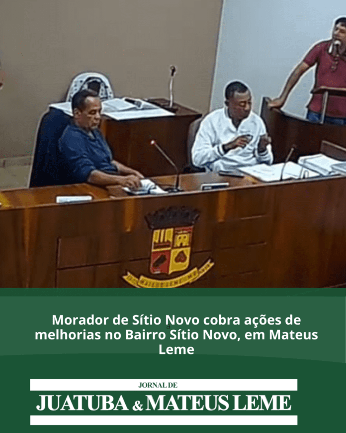 Durante a sessão da Câmara de Mateus Leme, o senhor Hélio, morador do bairro Sítio Novo, usou a tribuna da Câmara para relatar problemas que a comunidade enfrenta com a falta de infraestrutura.  “Tenho 66 anos e, desde 14 frequento Sítio Novo, que é um lugar esquecido. Nunca vejo uma proposta ou emenda voltada para o bairro. Lá tem mato tomando conta da estrada”, relatou.