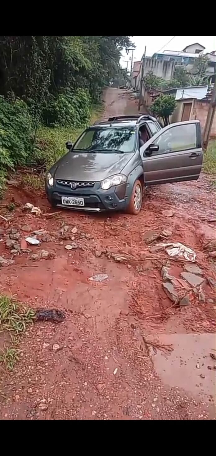 Vídeos compartilhados por moradores mostram vias cobertas por lama, buracos profundos e dificuldade de acesso para veículos. Em um dos registros, uma moradora relata que um carro chegou a atolar e virar parcialmente no local. Segundo ela, o motorista só conseguiu sair com a ajuda de outra pessoa que empurrou o veículo. No vídeo, a moradora aponta um buraco aberto na via, identificada na publicação como lateral da Avenida JK, e afirma que o trecho oferece riscos, principalmente para idosos, devido à grande quantidade de lama.