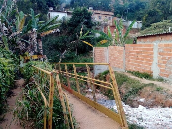 A instalação de uma passarela sobre o córrego Olhos D`água, prevista para ser realizada assim que fosse concluída a construção da estrutura metálica em 2014, entre os bairros Imperatriz e o centro de Mateus Leme segue enferrujando no meio do mato há quase sete anos.
