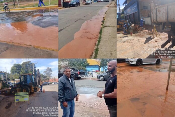 O episódio foi denunciado em vídeo nas redes sociais pelo morador Luiz Fabiano, conhecido como “Mirim”. Nas imagens, é possível ver a água jorrando com força da tubulação danificada, invadindo as calçadas e atingindo as fachadas das lojas.