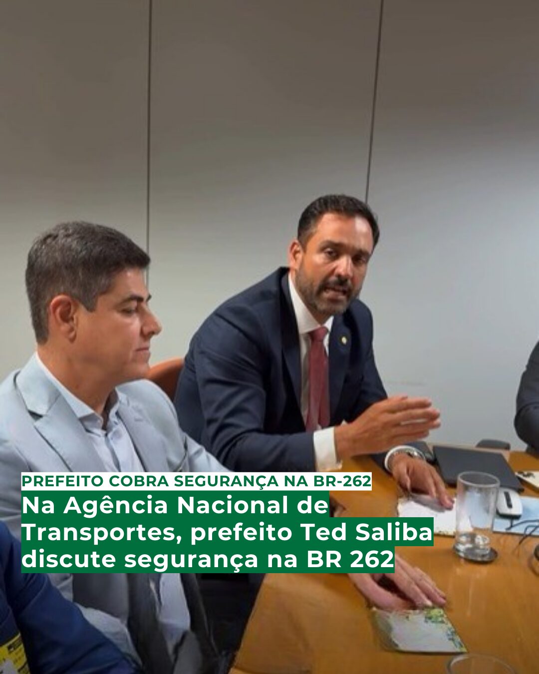 A agenda da comitiva de Juatuba em Brasília incluiu encontro de autoridades para garantir a segurança na BR-262. Em uma reunião realizada na última quarta-feira (25), com representantes da Agência Nacional de Transportes Terrestres (ANTT), o prefeito Ted Saliba cobrou providências para garantir a segurança de quem trafega ou vive às margens da BR-262. O encontro contou com a presença do deputado federal Diego Andrade, vereadores e secretários municipais, e teve como pauta central garantir as cláusulas do contrato da concessionária Way 262, responsável pelo trecho que corta o município.