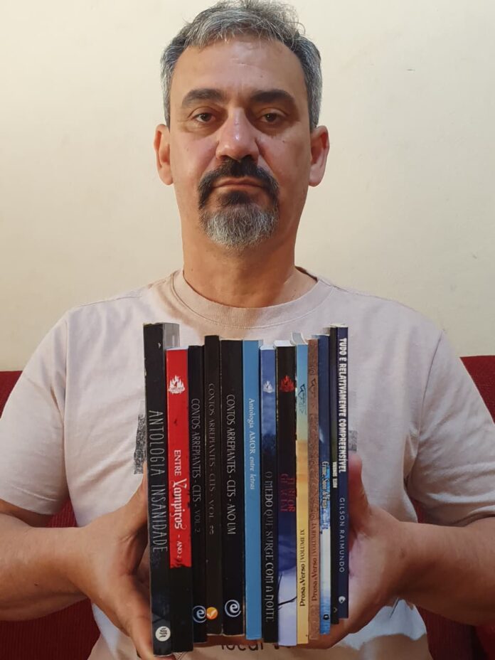 A partir dessa experiência, a trajetória literária de Gilson começou a tomar forma — primeiro organizando concursos. “Junto com outros três autores, decidimos dar continuidade aos desafios no site e criamos o Concurso Literário de Terror e Suspense – CLTS, com quatro etapas anuais. Neste mês de setembro, finalizamos nossa trigésima segunda edição”, relata. Depois como organizador de coletâneas: “A partir do CLTS, organizamos três antologias com os melhores contos dos primeiros anos, selecionados pelos próprios participantes: ‘Contos Arrepiantes – Ano Um’, ‘Contos Arrepiantes – Volume 02’ e ‘Contos Arrepiantes – volume 03’”, revela.