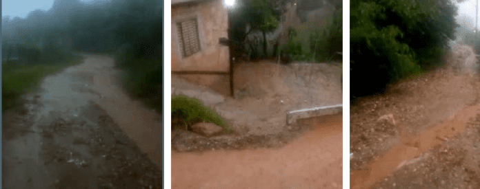 “Colocaram um caninho (manilha) de 100 e estão falando que é rede de esgoto para cobrar taxa”, diz. Em seguida, ele mostra a água esguichando no meio da via. “Olha aí o vazamento. A água da chuva passa aqui, arranca pedra e terra, os canos rompem e a água esguicha até o poste”, explica. Em outro registro, ele mostra a enxurrada na mesma rua. “Já tem mais de 20 anos que essa rua é desse jeito. Mas depois que a Copasa fez as obras, tudo piorou.”