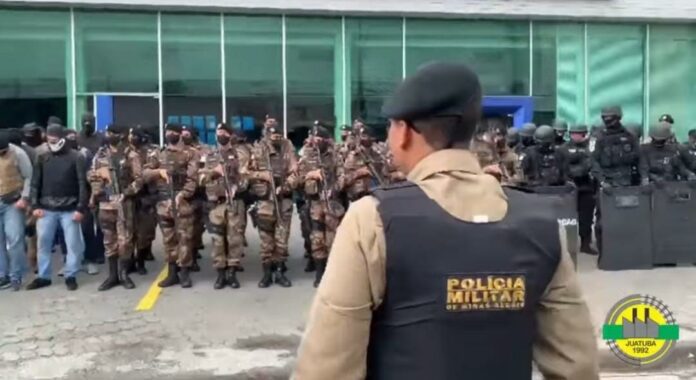 A Polícia Militar realizou nesta terça-feira (07), uma simulação de ataque contra “assaltantes de bancos”, no Centro de Juatuba. A ação ocorreu das 6h às 8h da manhã, em frente às principais agências bancárias do município. Foram utilizadas na operação munições de festim e granadas de efeito moral. Veículos da Prefeitura de Mateus Leme também foram utilizados durante a simulação.