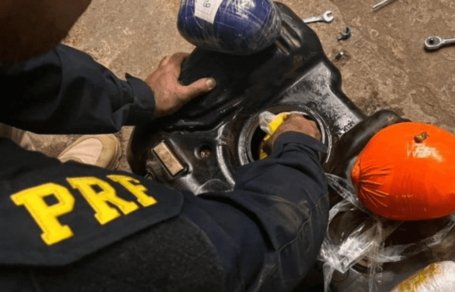 Durante a fiscalização, o condutor informou que havia saído do Mato Grosso do Sul e que foi contratado para transportar a droga até Minas Gerais. Na inspeção, os agentes localizaram quatro pacotes do entorpecente escondidos dentro do tanque de combustível.