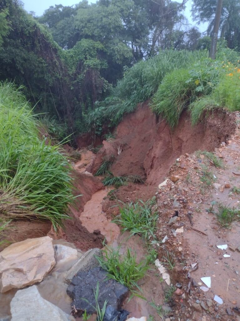 Uma casa está quase sendo ‘engolida’ pela erosão na Avenida Getúlio Vargas, em frente ao número 200, no bairro Cidade Satélite, em Juatuba. Os moradores acionaram a reportagem para denunciar “o descaso e a falta de compromisso do poder público com a população”. A cratera que começou a se abrir em 2020, após intervenções para escoamento da água da chuva pela própria prefeitura, cresceu após as últimas chuvas.