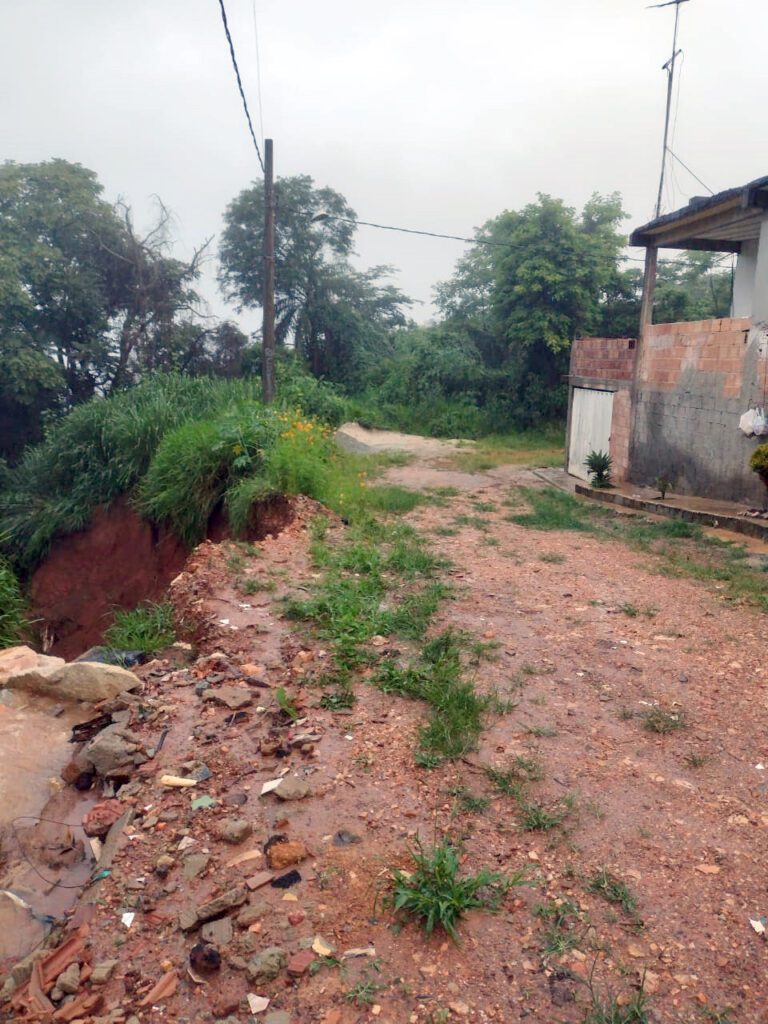 Ela ressalta que com as últimas chuvas, o buraco ficou a cerca de cinco metros próximo à sua casa. “Isso é negligência. Moramos eu e minha irmã no local e estamos correndo risco de vida.  O que vamos fazer? Esperar nossas casas serem engolidas pelo buraco? Quem vai se responsabilizar por isso”, questiona.