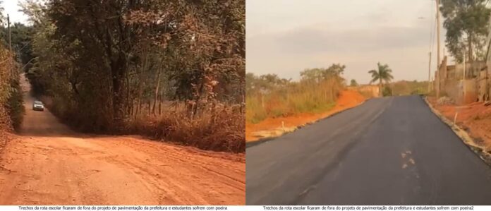 Uma das fotos compartilhadas em um grupo de WhatsApp retrata uma estrada de terra parcialmente pavimentada, mas sem a devida finalização nas laterais, o que tem gerado piadas entre os moradores. Um deles ironiza a situação questionando: “Isso é a linha da rota escolar”? Outro responde de maneira sarcástica: “Tá parecendo a cidade do Texas” e aponta a falta de meio-fio e a incerteza se será instalado.
