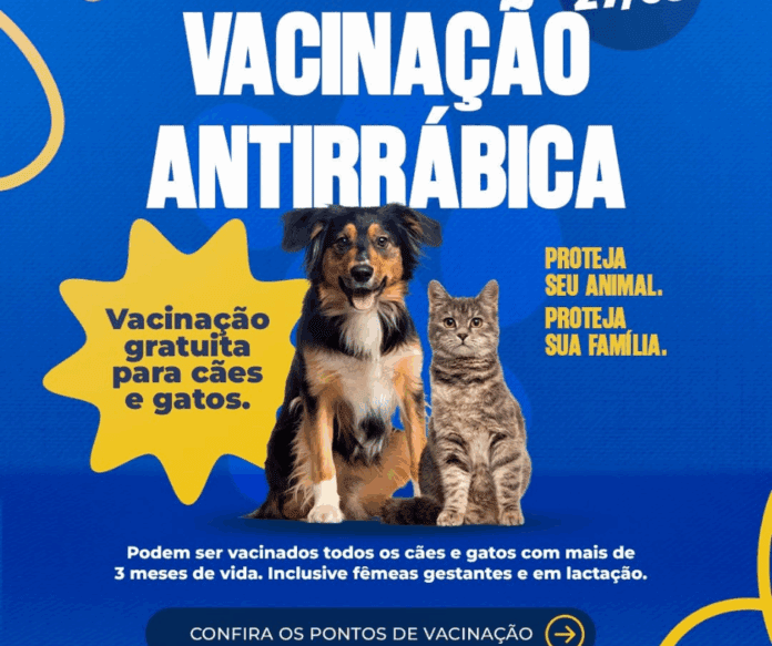 A vacinação gratuita contra a raiva para cães e gatos acontece nos dias 20 e 27 de setembro, das 8h às 16h, em diversos pontos da cidade.
